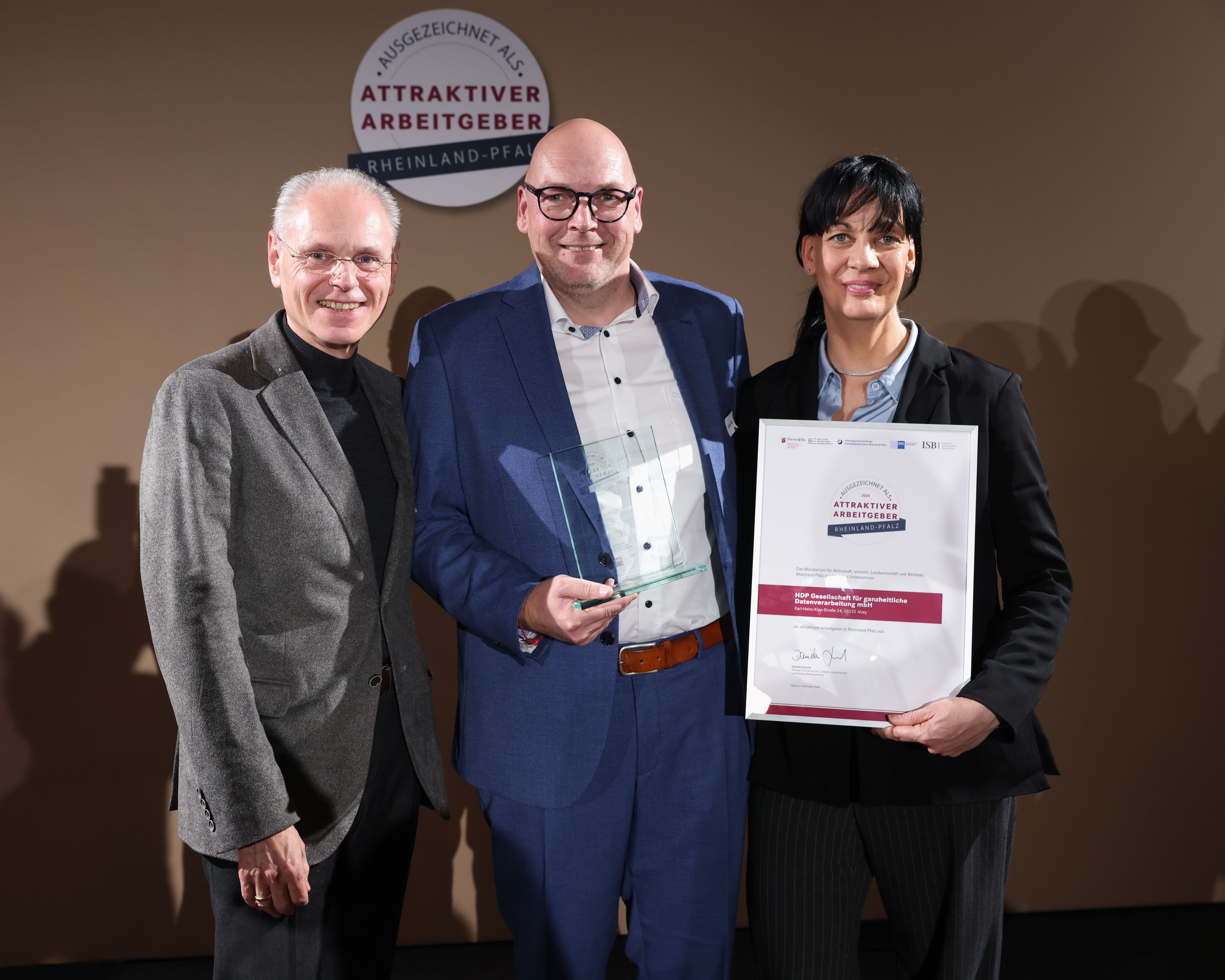 Die HDP GmbH hat sich durch herausragende Mitarbeiterorientierung und Innovationsfreude einen Platz unter den Preisträgern gesichert und gehört damit zu den Best-Practice-Unternehmen. Besonders für die lebensphasenorientierte Personalpolitik wurde das Unternehmen als „Attraktiver Arbeitgeber Rheinland-Pfalz“ vom Landesministerium für Wirtschaft, dem Institut für Beschäftigung und Employability (IBE) und der Investitions- und Strukturbank Rheinland-Pfalz (ISB) ausgezeichnet.